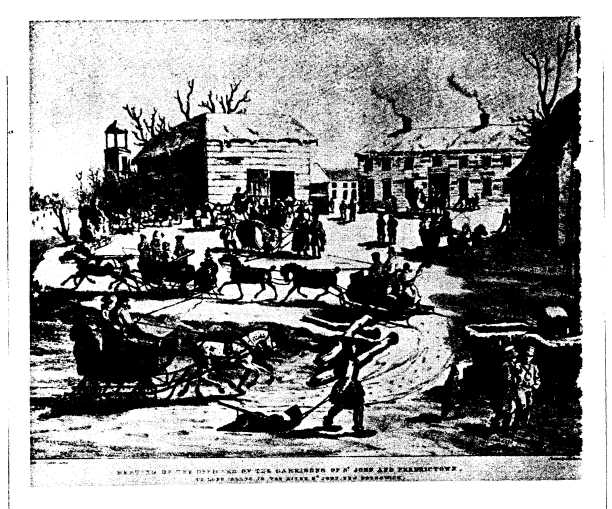Leonard Slip's tavern, Blizzard in New Brunswick The building on the right is Leonard Slipp's inn on the St. John River. He called the spot Long Island, probably from his New York experiences, and the inn BLIZZARD. See Marke Slipp's message of 8 Oct. 2001. |